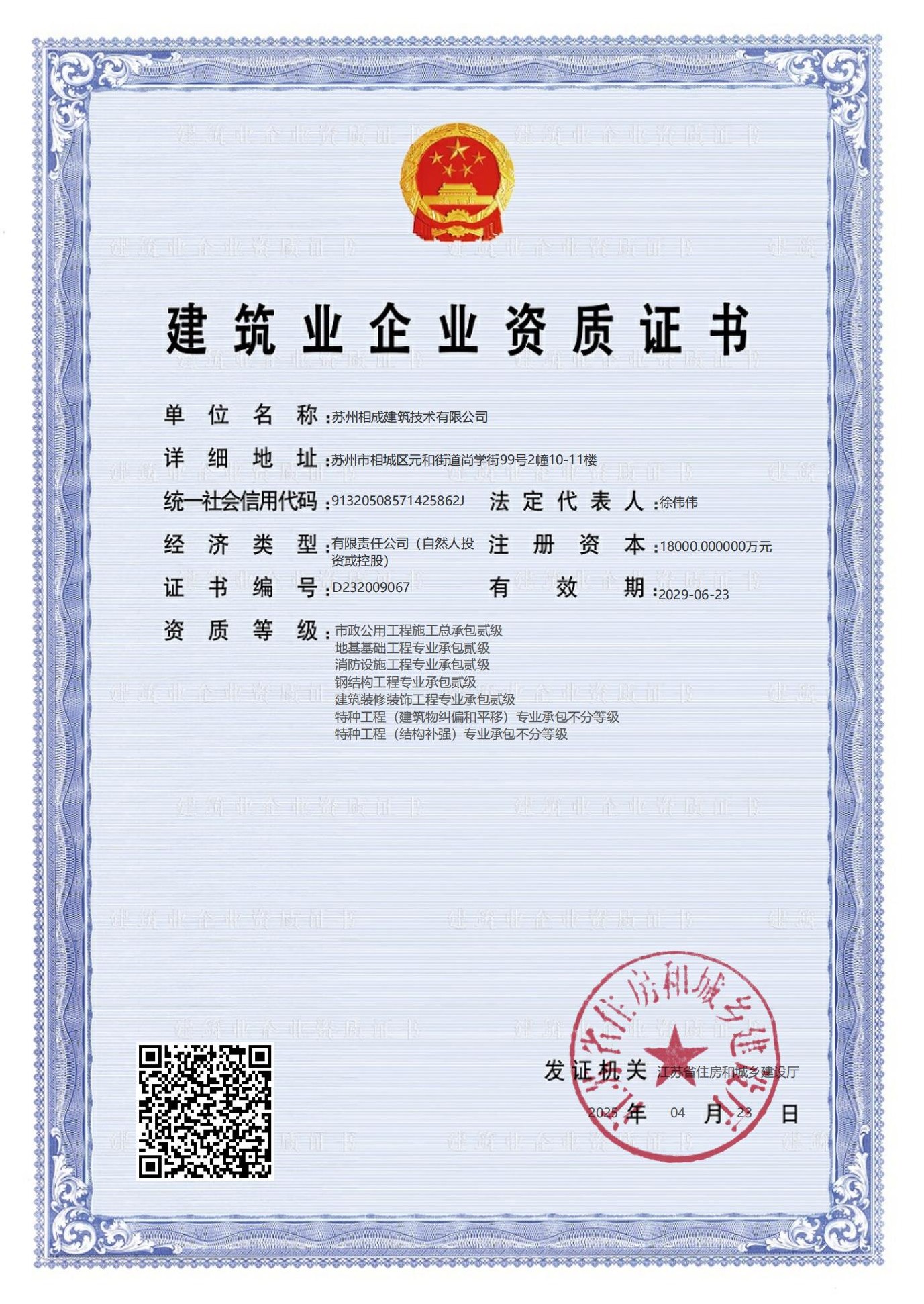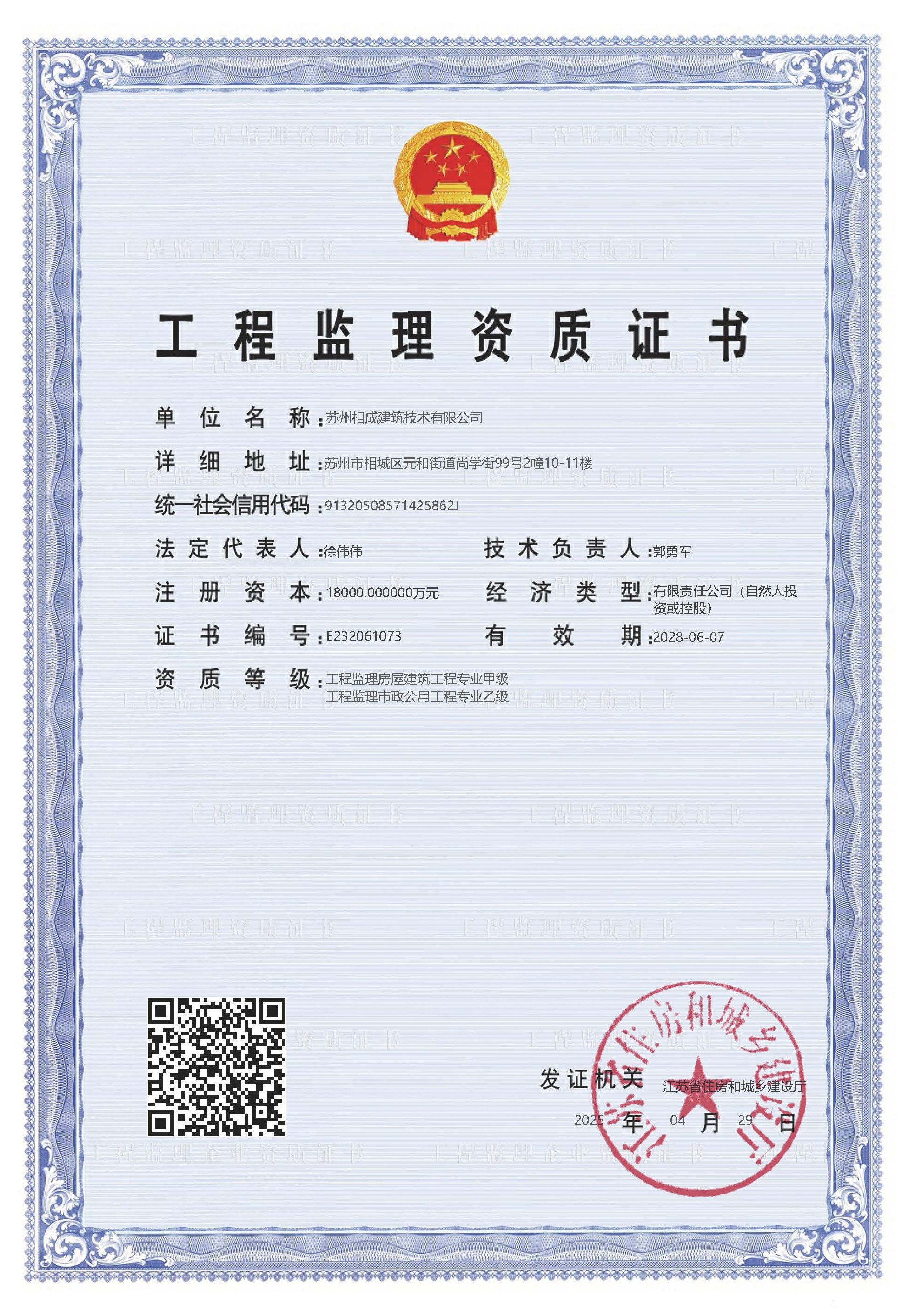 蘇州相成建筑技術(shù)有限公司是一家以提供建筑開發(fā)服務(wù)為主的建筑企業(yè),公司位于蘇州市相城區(qū),成立于2011年3月,注冊(cè)資本 10000萬(wàn),歷經(jīng)13年的努力于2022年7月獲省住建廳頒發(fā)房屋建筑工程施工總承包壹級(jí)資質(zhì),市政公用、建筑裝飾、地基基礎(chǔ)、消防設(shè)施、鋼結(jié)構(gòu)工程等專業(yè)承包二級(jí)資質(zhì); 2023 年6月份增設(shè)房屋建筑工程監(jiān)理甲級(jí)、市政一級(jí)監(jiān)理資質(zhì);目前是相城區(qū)唯一一家集施工總承包一級(jí)和建筑工程監(jiān)理甲級(jí)資質(zhì)的企業(yè)。